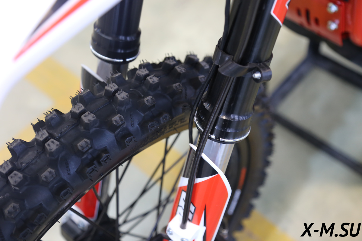 Спортивные алюминиевые диски 21/18. и ТОПовая резина KENDA, это то, о чем мечтают все начинающие и опытные райдеры. Легкие колеса, с антибуксаторами и качественной резиной KENDA, что значительно улучшает управление мотоциклом, а качественная резина гарантирует качественное сцепление с любой поверхностью.